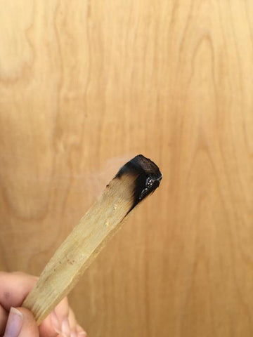 Palo Santo does not catch fire as easily as sage. When lighting the wood, the tip needs to be held over an open flame for a good 30 seconds to ensure it is lit before you blow it out. Once you blow out the flame, it will produce the smoke needed for smudging. It is common for Palo Santo to need relighting.