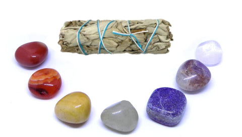 Chakra Crystal Healing Set – 7 Chakra Stones Tumbled with White California Sage – Chakra Crystal Set