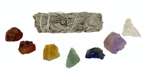 Cleansing & protecting your chakras is a powerful tool to help balance yourself. Each of these stones corresponds with a particular chakra center. Chakras are concentrated energy centers of the body that each serve a different purpose. If you are focusing on a particular chakra, you can carry that stone with you for the day. You may also smudge the crystals with sage which we include.